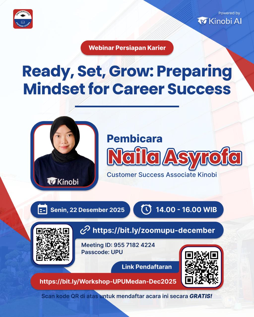 Medan, 22 Desember 2025 – Pusat Pengembangan Karir Universitas Potensi Utama menyelenggarakan webinar inspiratif bertajuk “Ready, Set, Grow: Preparing Mindset for Career Success” Kegiatan yang dilaksa...